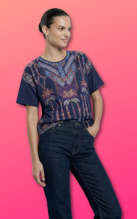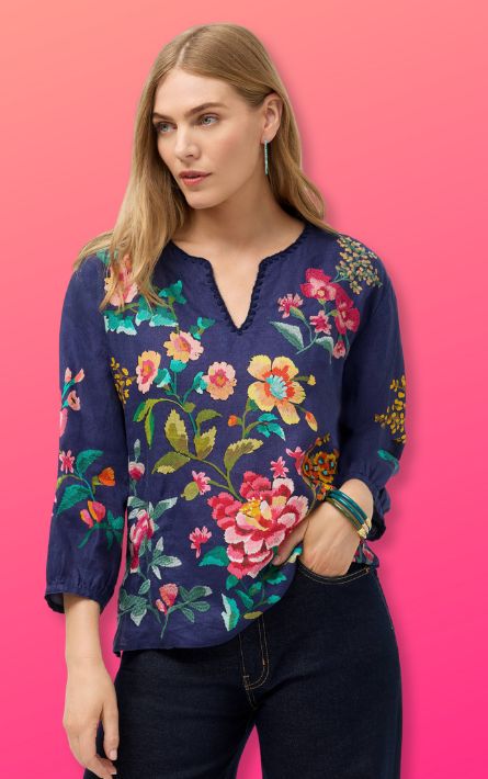 Johnny Was Palm Trees Mariafe Blouse in Blue Night