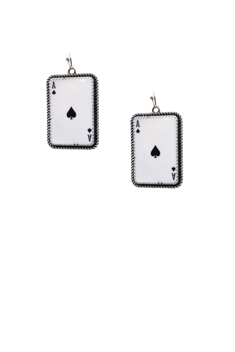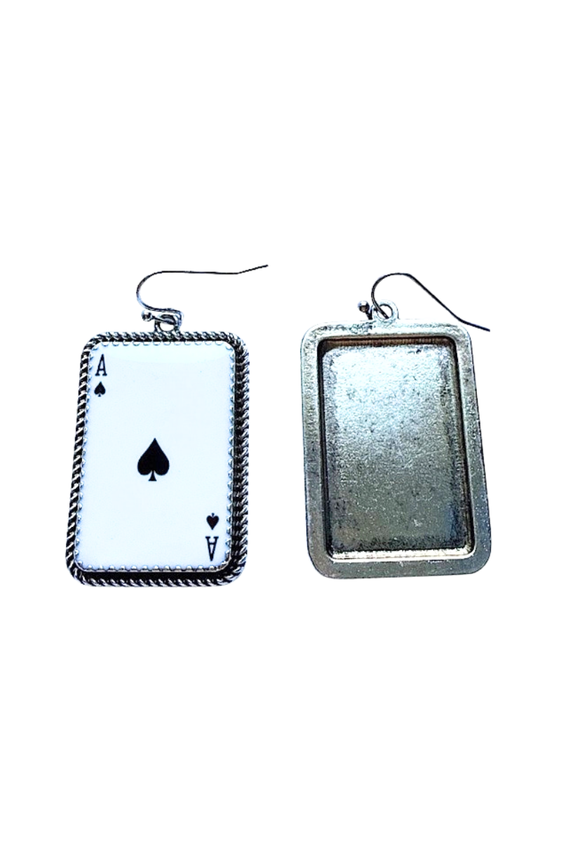 Ace Of Spades Earrings(0) $22.00 Excl. taxArticle code: BIJE004BlkMake a choiceDefaultMake a choice: *Default - $22.00Add to cartLogin for wishlistBuy NowDescriptionShareCards Anyone? The Ace Of Spades are inlaid in a aged twist border. Facebook Pin it Whatsapp