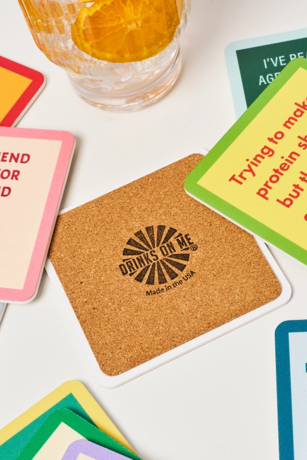 At Drinks on Me, they create laugh-out-loud moments. Perfect for coffee, tea, cocktails, beer, wine or brunches, our coasters protect surfaces while adding kitsch charm you'll love. Ideal for hostess gifts, housewarmings, birthdays, holidays, or funny party favors, they add a playful touch & humor to any home.