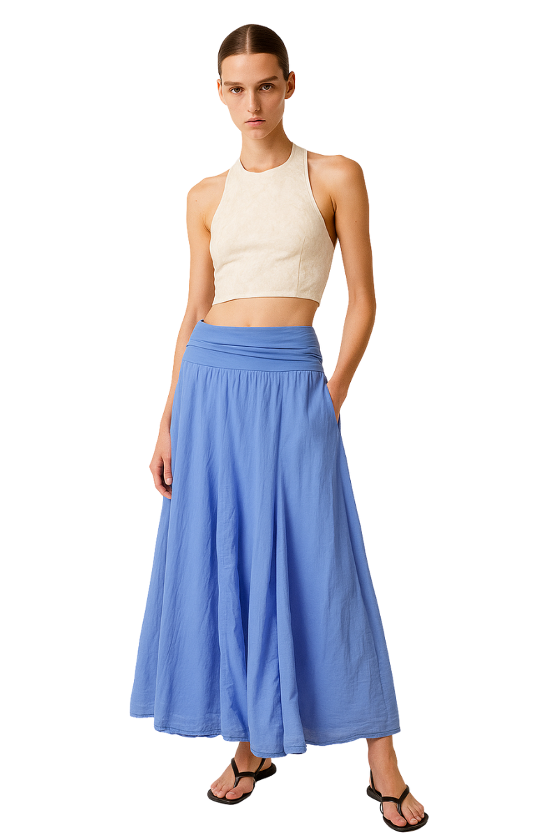 Bohemian Skirt in Sky Blue(0) $72.00 Excl. taxArticle code: BASK8096SkyMake a choiceSize : ONE SIZESize: *ONE SIZEAdd to cartLogin for wishlistBuy NowDescriptionShareOur boho skirt is a classic. The skirt is full length with the knit roll-down, stretchy waistband, we have all come to love. Add your linen top, tee or denim jacket! Facebook Pin it Whatsapp