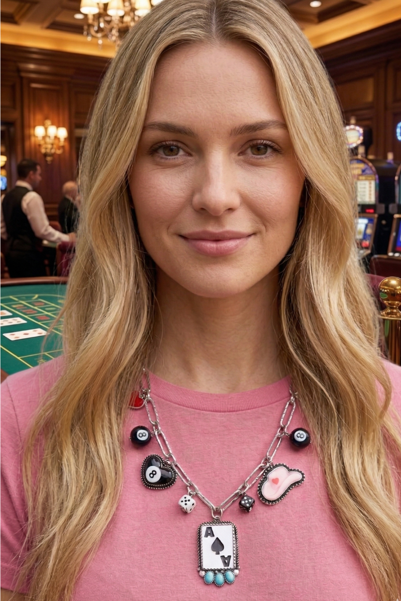 Casino Charm Necklace(0) $46.00 Excl. taxArticle code: SWN0655Make a choiceDefaultMake a choice: *Default - $46.00Add to cartLogin for wishlistBuy NowDescriptionShareLove our Casino Theme Charm Necklace. Perfect for casino night or just because. Facebook Pin it Whatsapp