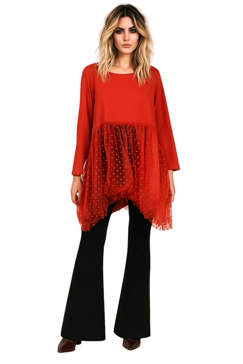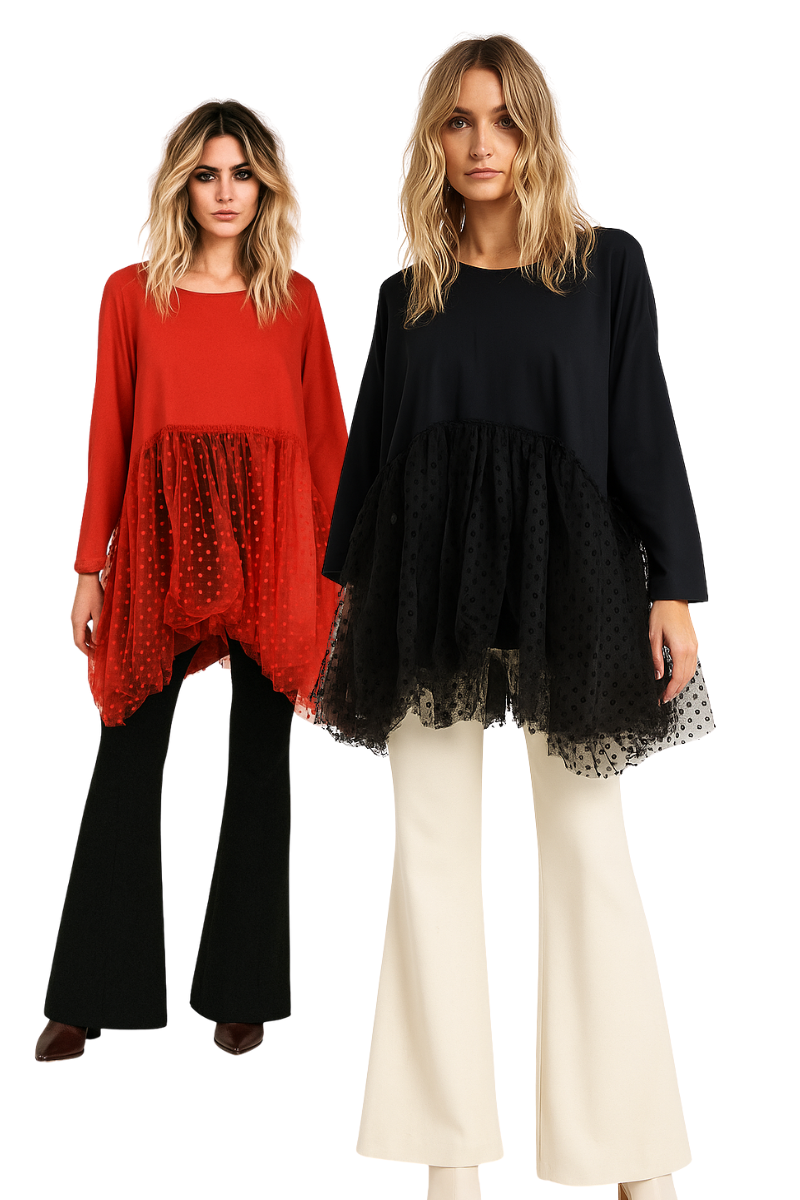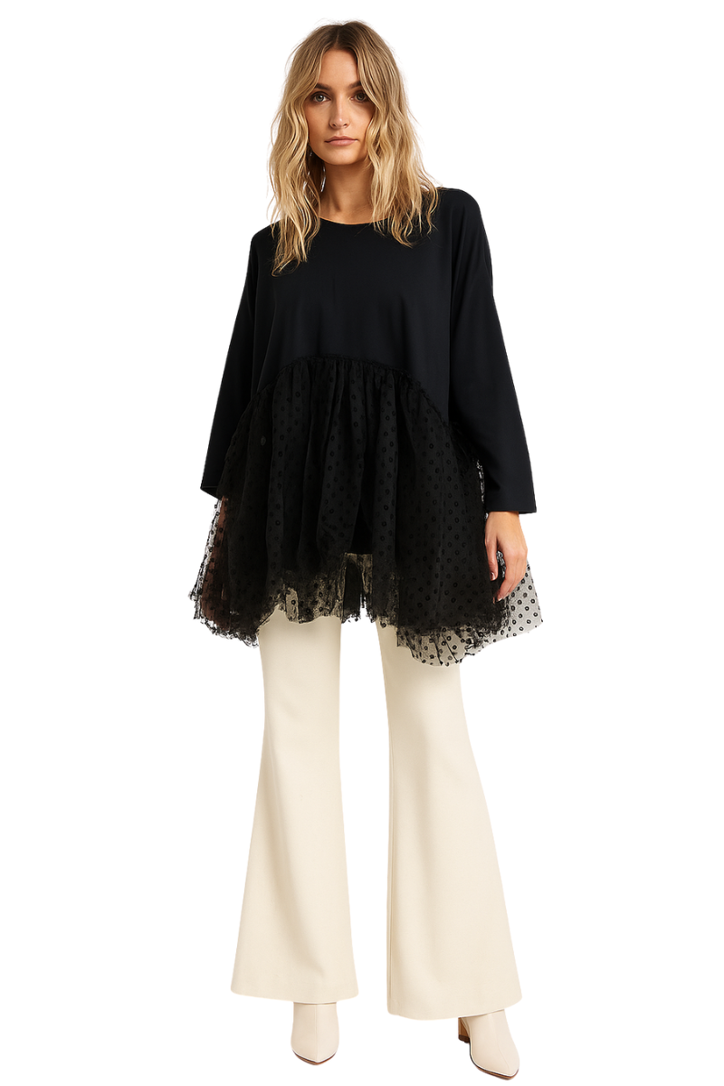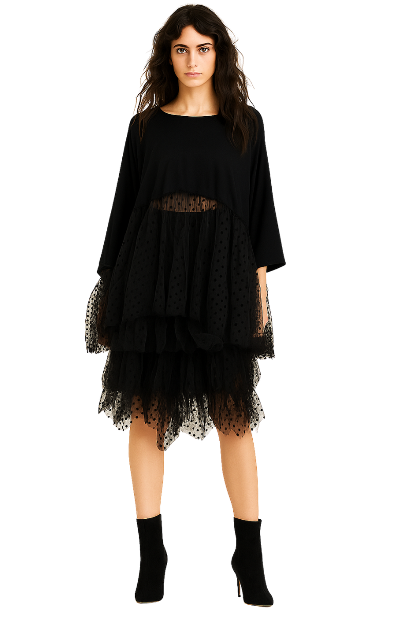 Sheer Tulle Mesh Fabric with Velvet Polka Dot Details on Bottom Panel