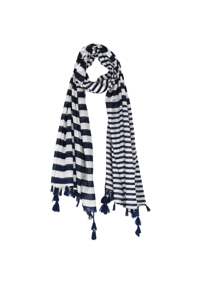 Cotton Stripe Scarf In Navy(0) $29.00 Excl. taxArticle code: NUTScarfNvyMake a choiceDefaultMake a choice: *Default - $29.00Add to cartLogin for wishlistBuy NowDescriptionShareA lightweight cotton scarf in white and navy stripes, with tassel details. Wear it on your neck, head, purse, or even as a belt! Facebook Pin it Whatsapp