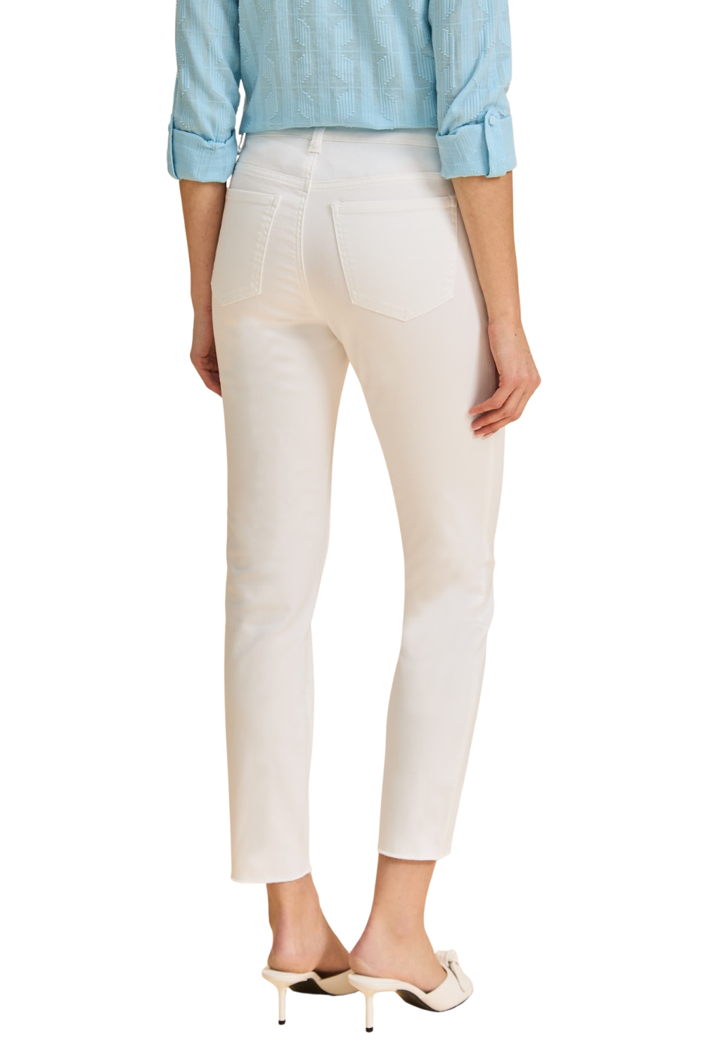 A wardrobe basic with a fun twist, our Olivia slim jean has an ankle length with a frayed hem.