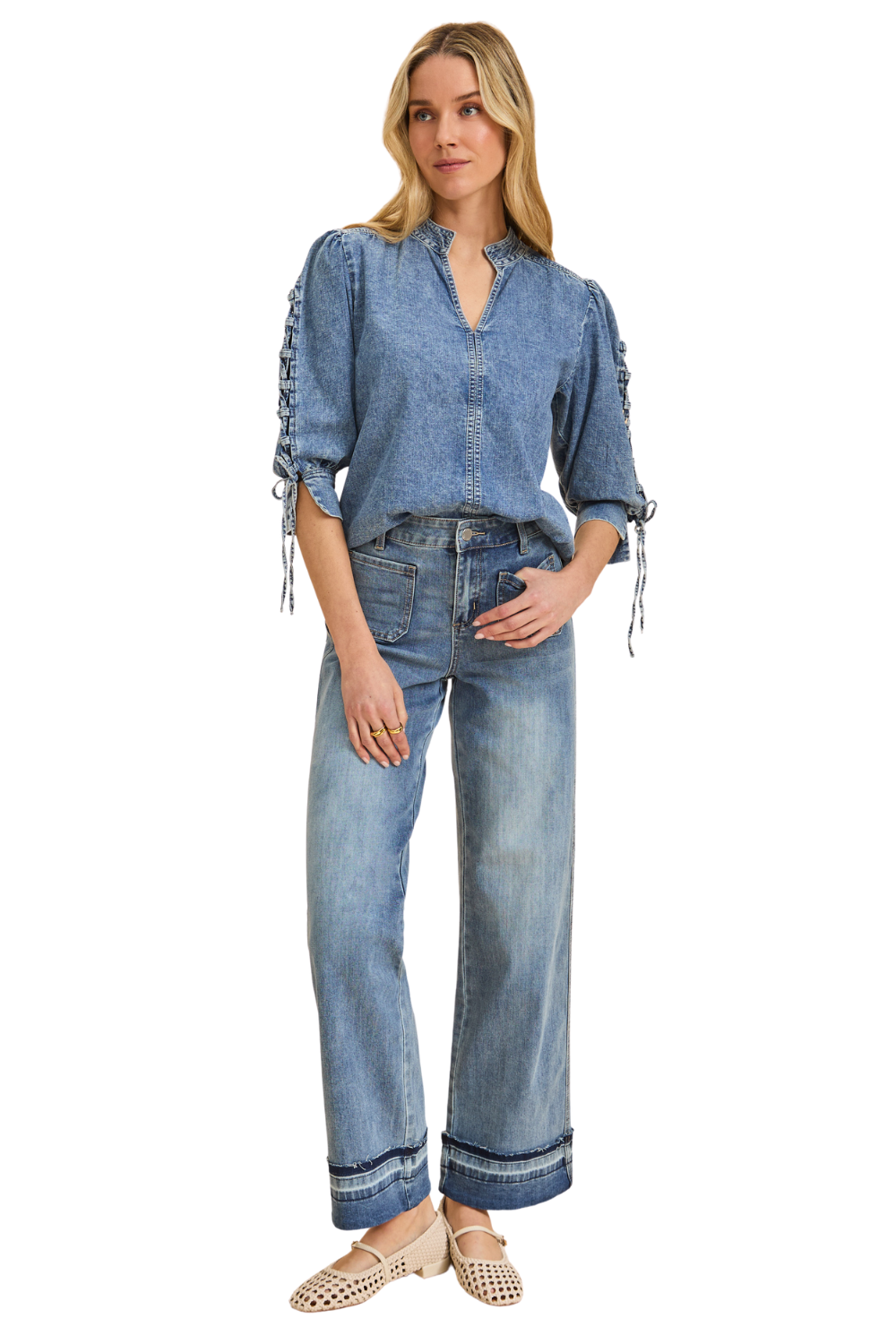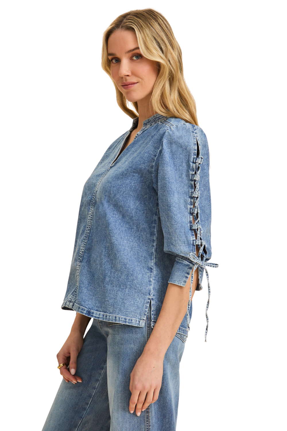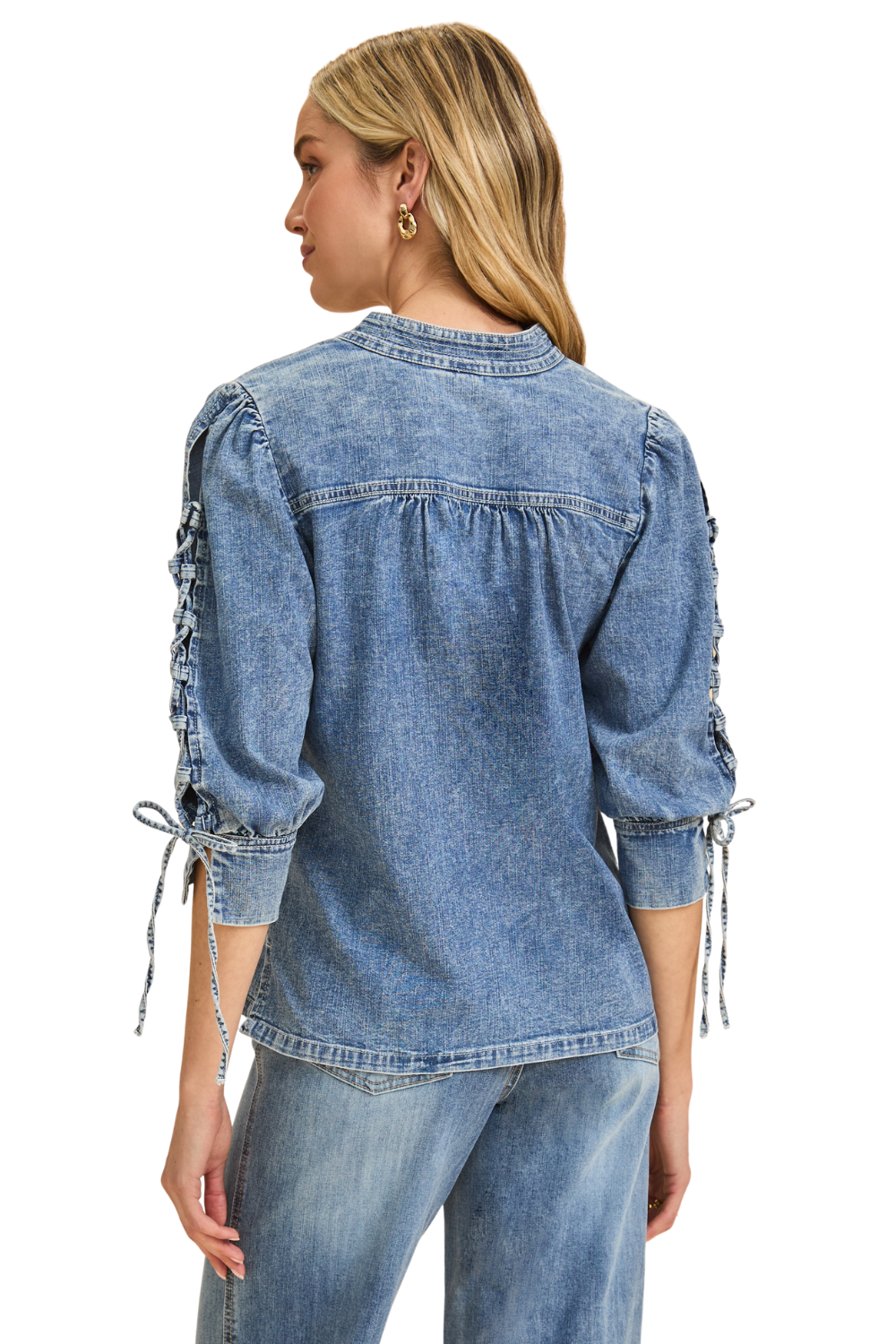 Lace-up Pouf Sleeves with Bottom Vent