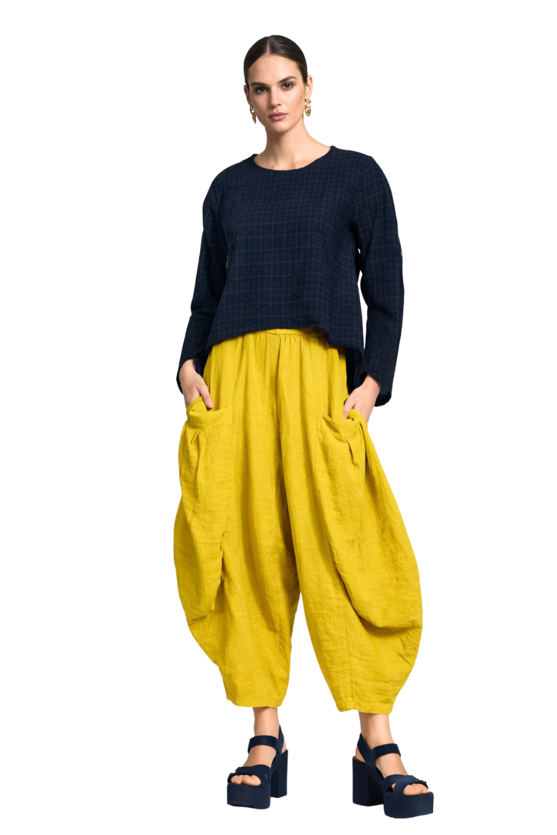 Wide Leg Pant with Tapered Hem (lantern/barrel silhouette)