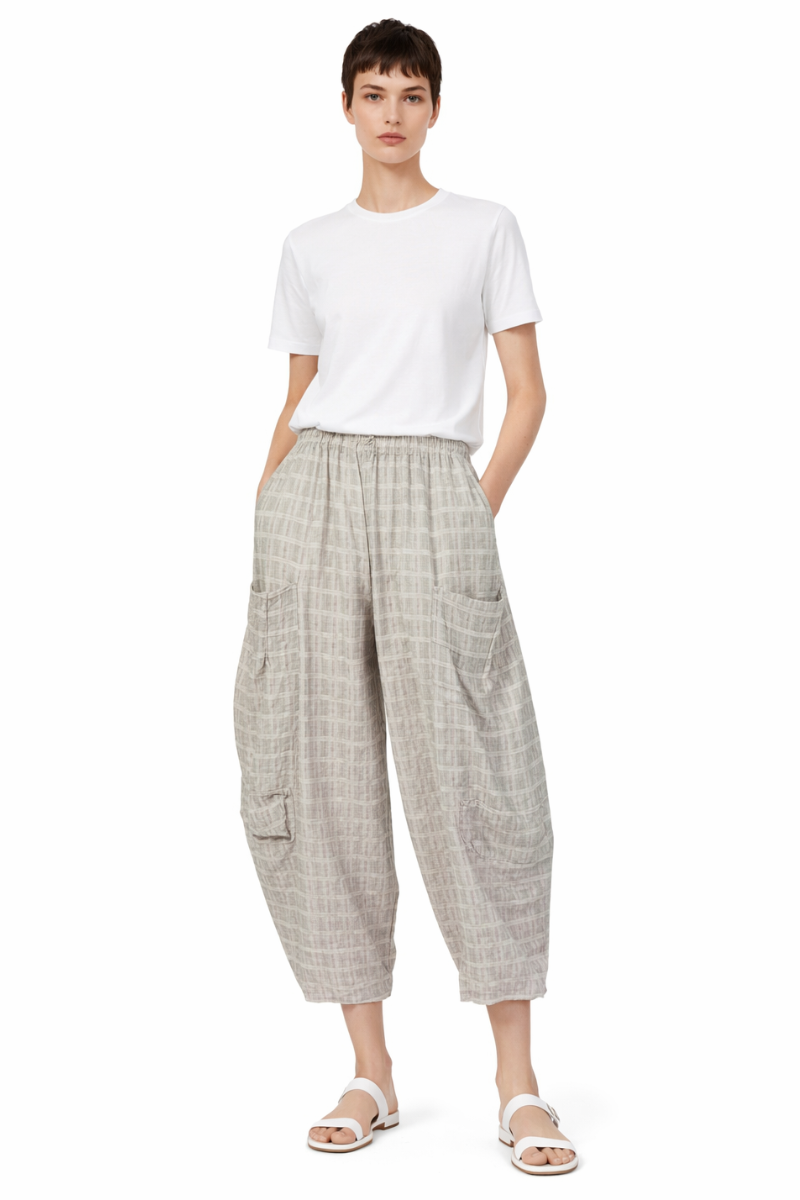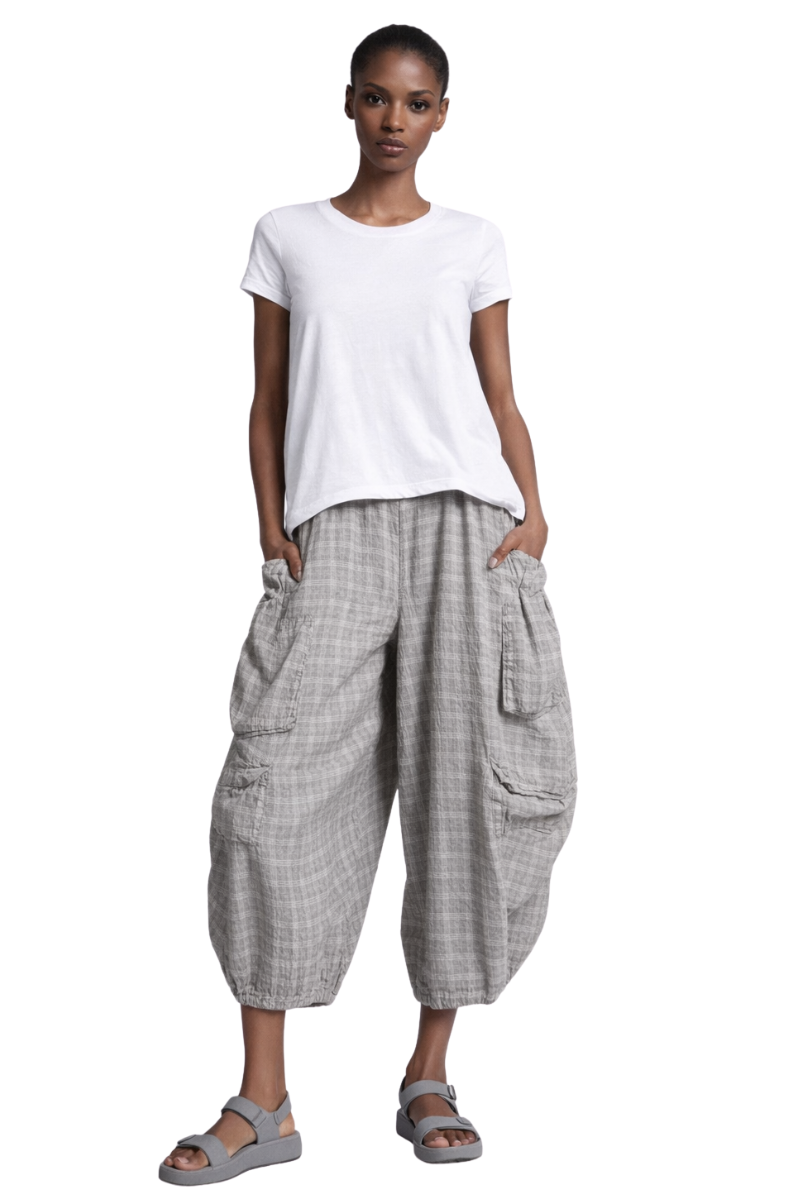 Wide Leg Pant with Tapered Hem (lantern/barrel silhouette)