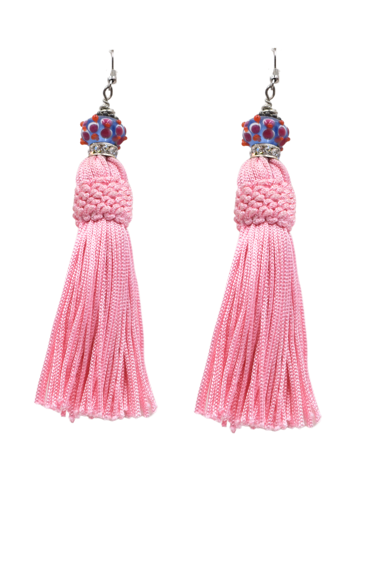 Handmade Tassel Earrings With Glass Beads on Pink(0) $30.00 Excl. taxArticle code: BECE0018PnkMake a choiceDefaultMake a choice: *Default - $30.00Add to cartLogin for wishlistBuy NowDescriptionShareGlass lampwork beads top these artist made earrings. Pink and a statement of boho style. Facebook Pin it Whatsapp
