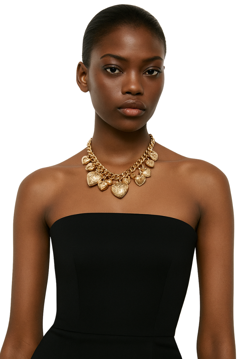 Large Chain on bottom half of necklace and golden beads on top half of necklace