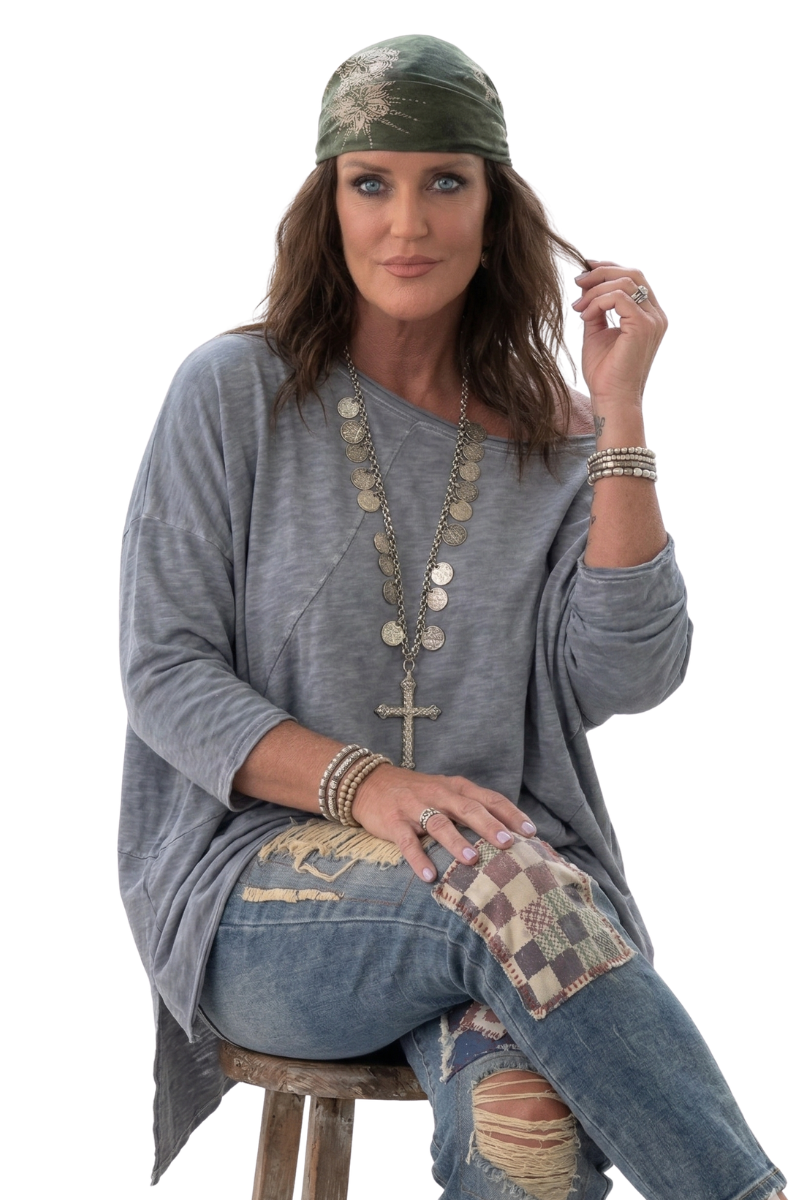 Jaded Gypsy Be Free Top in Vintage Denim(0) $97.00 Excl. taxArticle code: cMake a choiceSize : ONE SIZESize: *ONE SIZEAdd to cartLogin for wishlistBuy NowDescriptionShareJaded Gypsy's Be Free Top is a staple for any Bohemian style. Also... just darn cozy and soft. This is a washed light denim color. Perfect throw on! Facebook Pin it Whatsapp