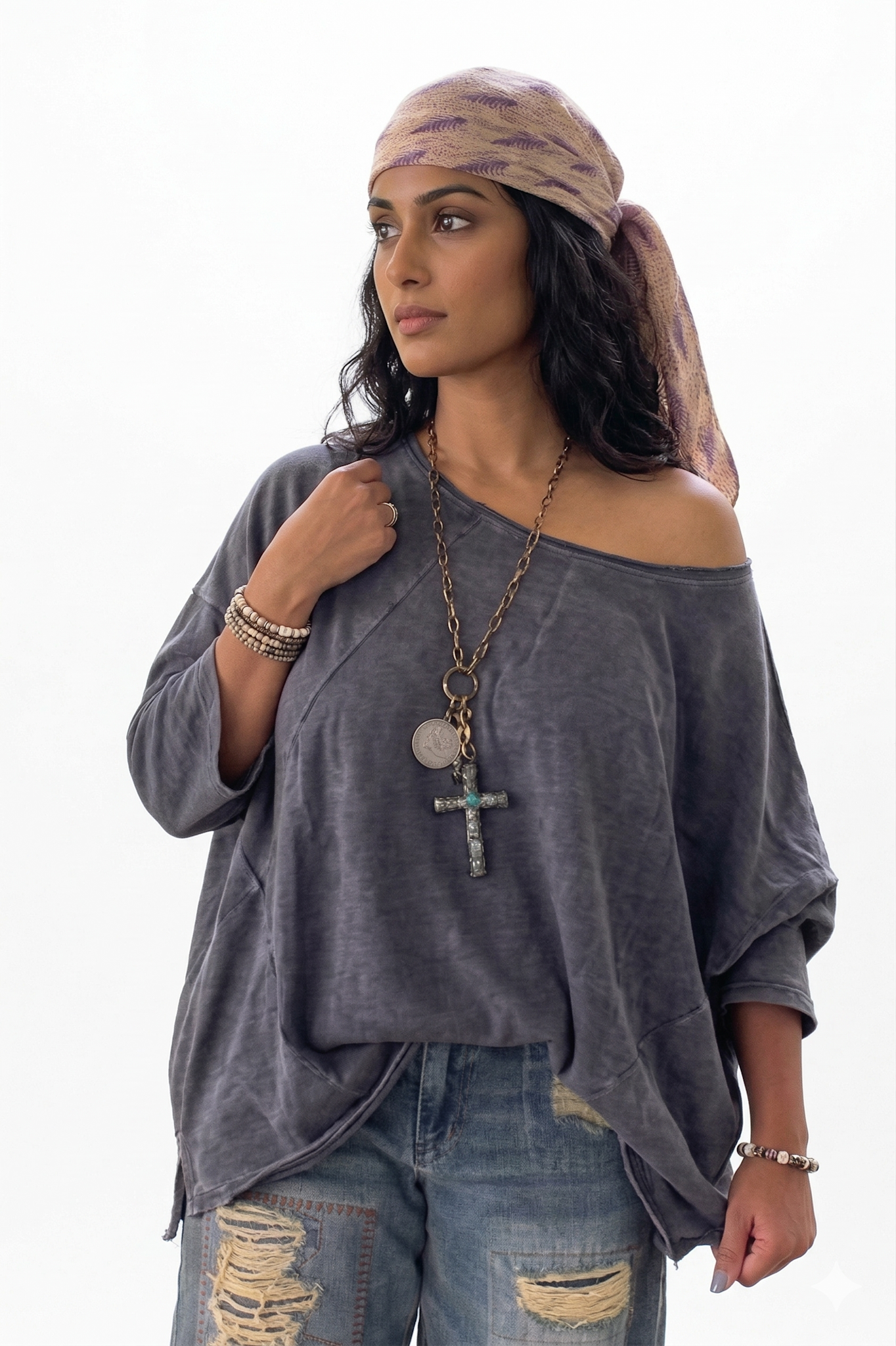 Jaded Gypsy Be Free Top in Vintage Indigo(0) $97.00 Excl. taxArticle code: JGTBeFreeIndigoMake a choiceSize : ONE SIZESize: *ONE SIZEAdd to cartLogin for wishlistBuy NowDescriptionShareA must have for your wardrobe! So soft and cozy. Flattering diagonal piecing. Slouchy and comfy. Facebook Pin it Whatsapp