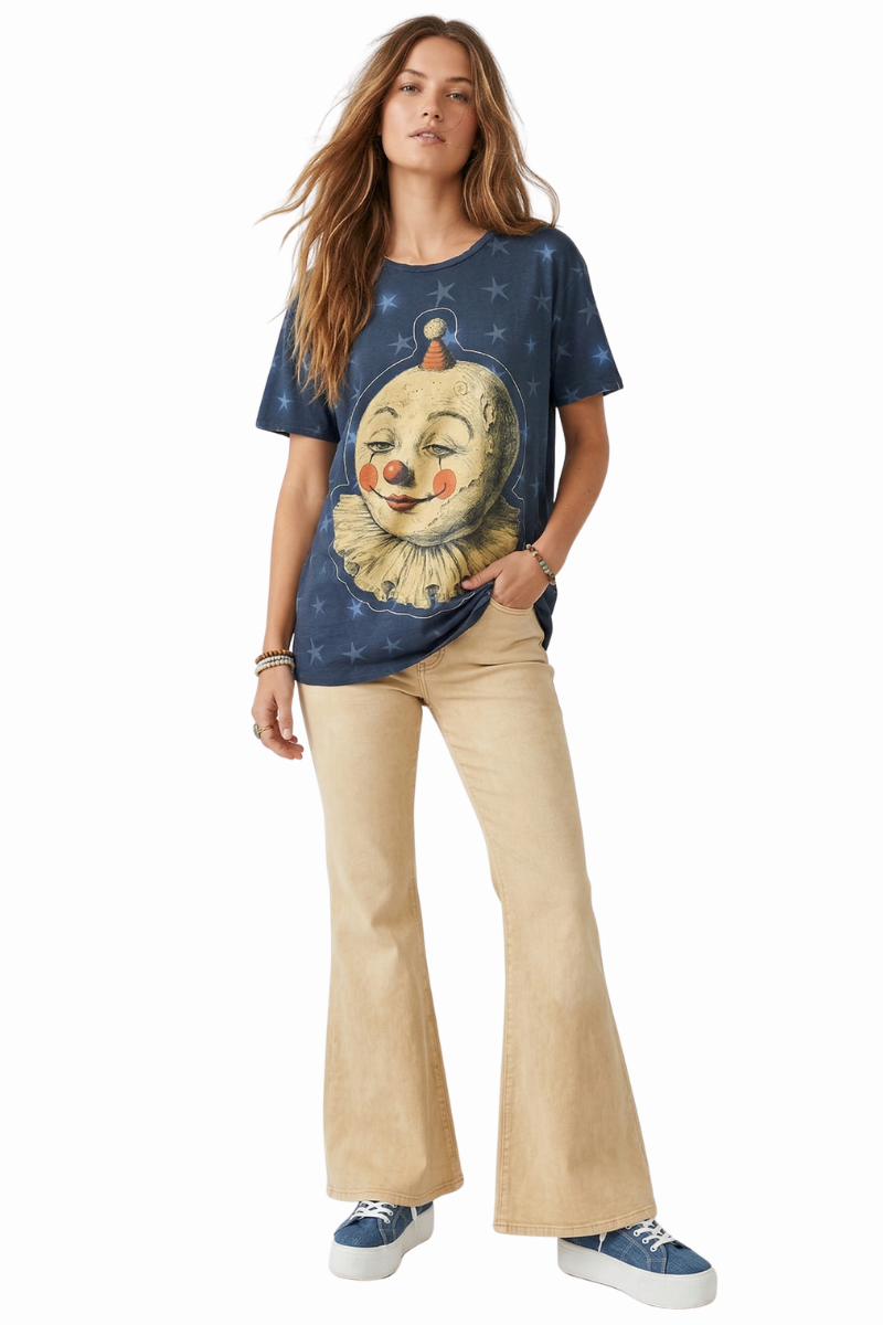 Jaded Gypsy Moon Dance Tee in Moon Wander(0) $88.00 Excl. taxArticle code: JGTMoonWanderMake a choiceSize : S/MSize : L/XLSize: *S/ML/XLAdd to cartLogin for wishlistBuy NowDescriptionShareOur dreamy clown! We love this relaxed tee from Jaded Gypsy! Facebook Pin it Whatsapp