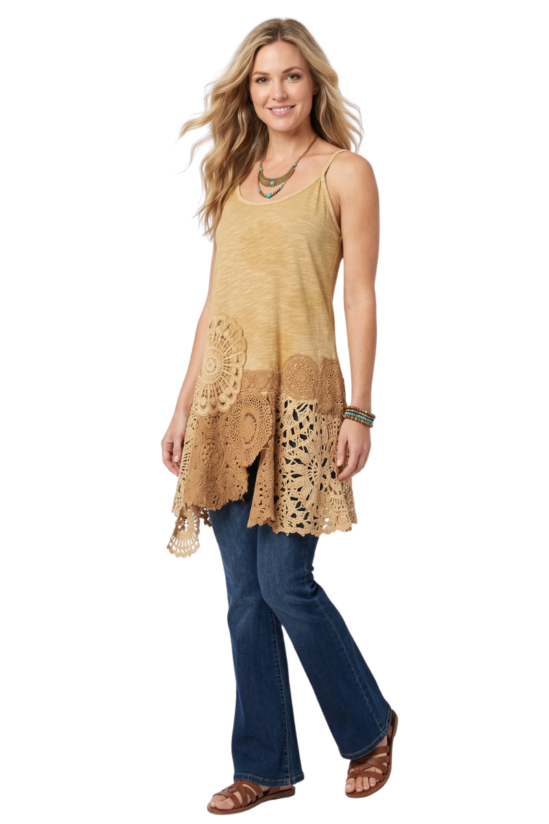 38" Bust, uneven hemline and adjustable straps, varies the length but approx. 38" at the side length.