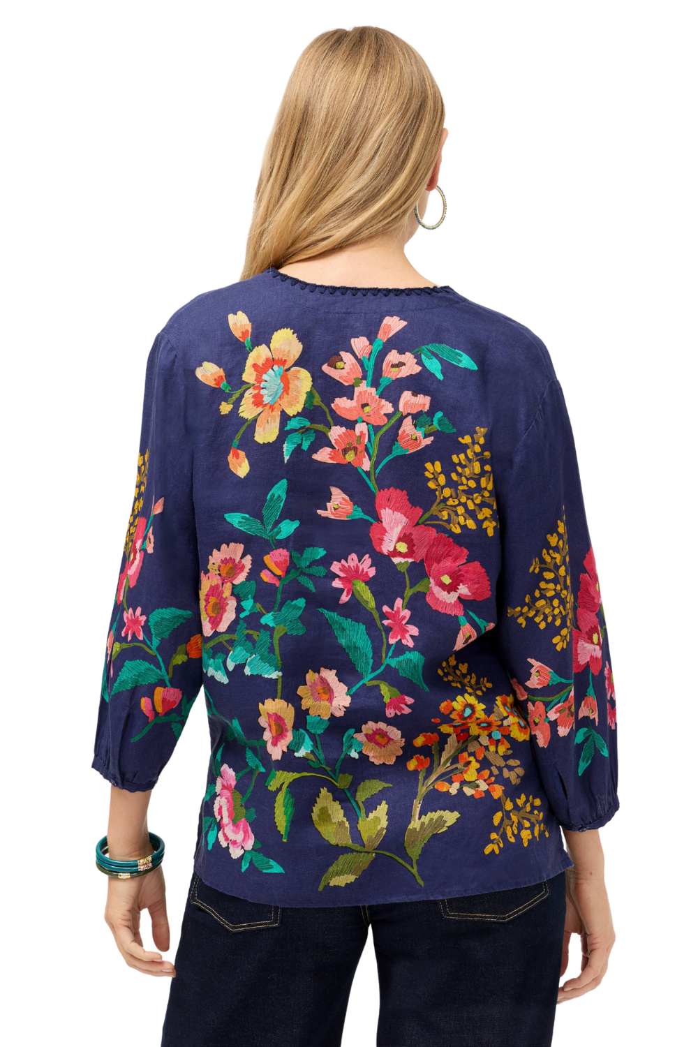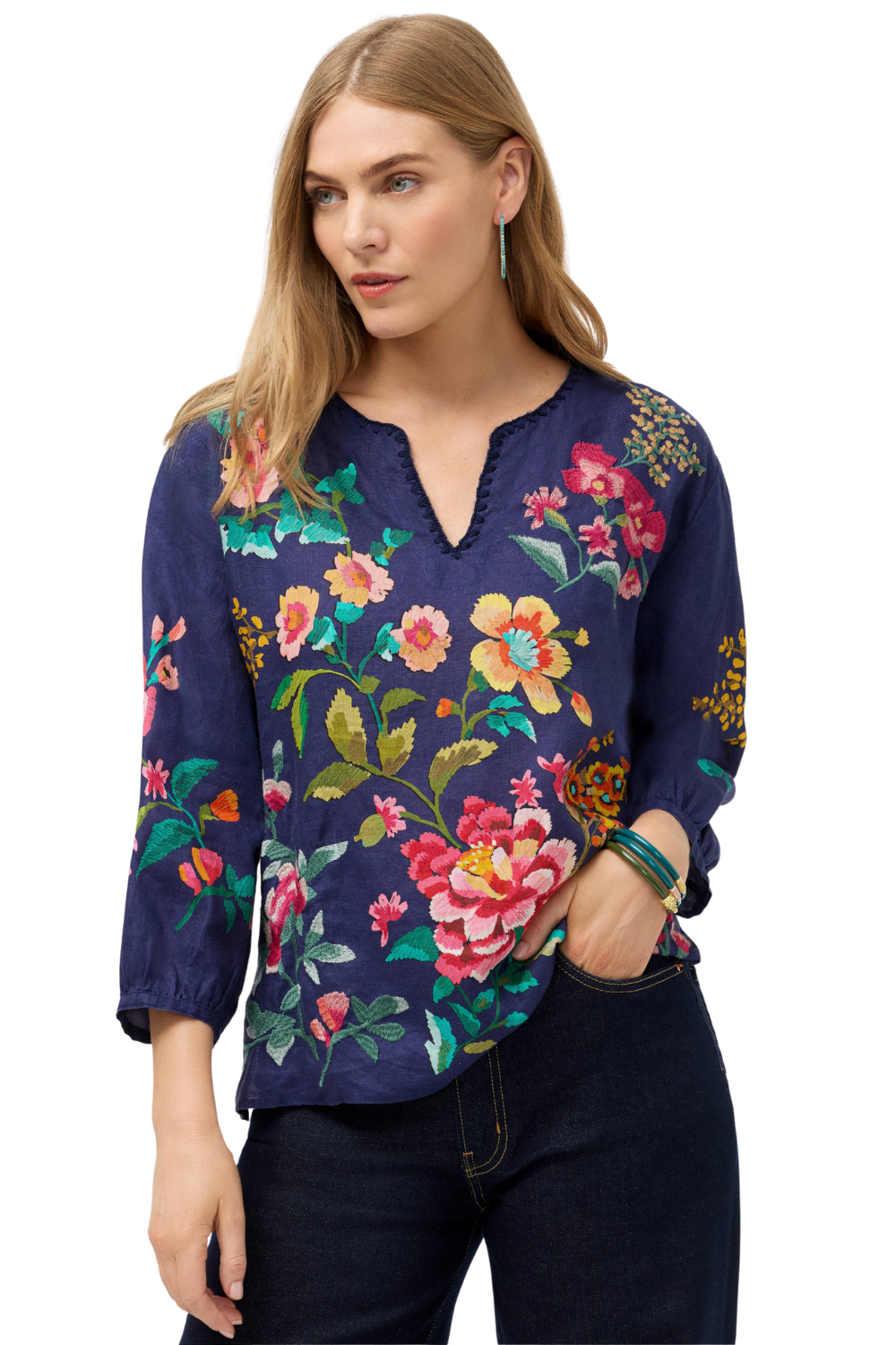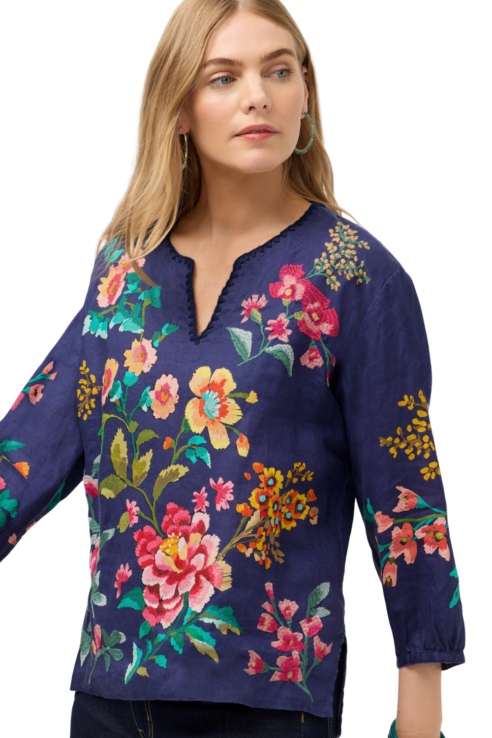 Split V-Neck with Embroidered Hem Details