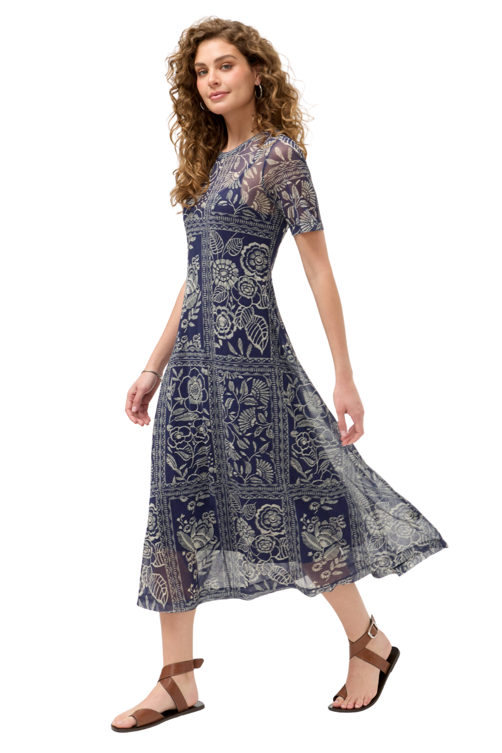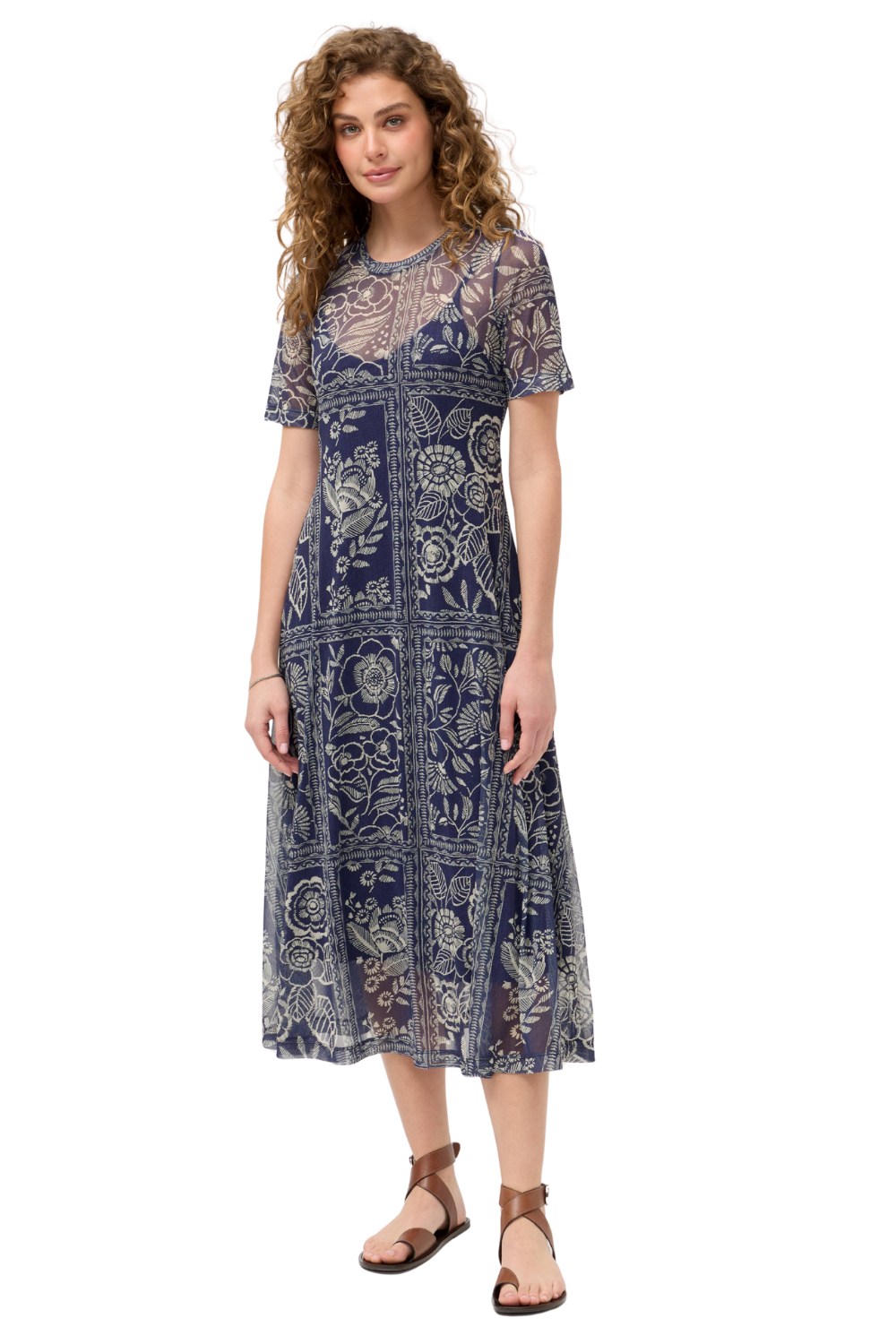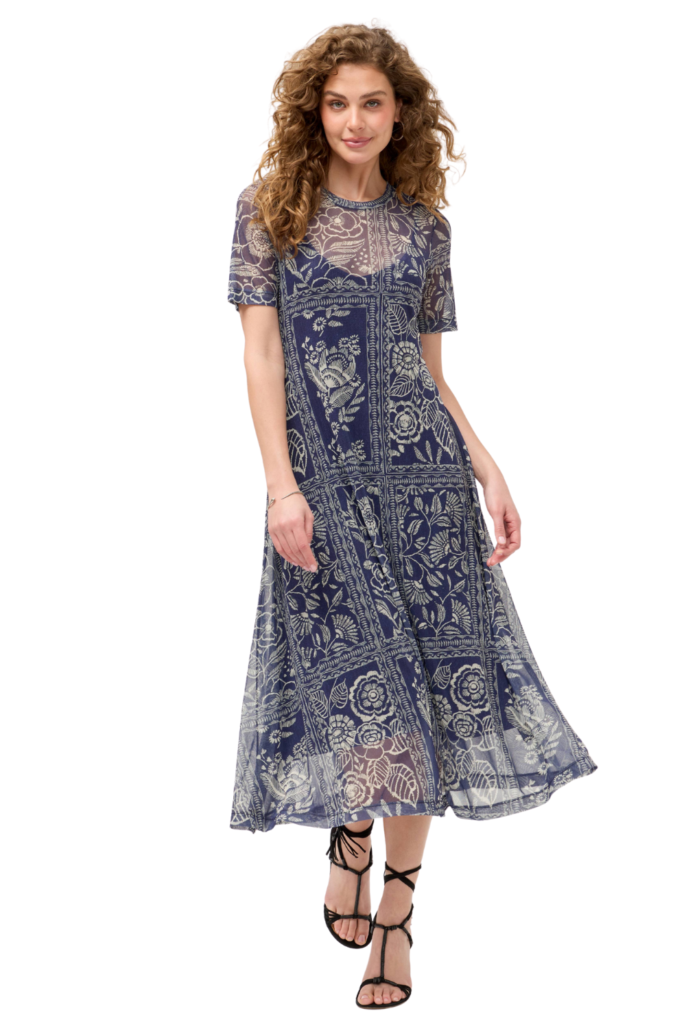 Sheer Mesh with Adjustable Navy Slip Dress