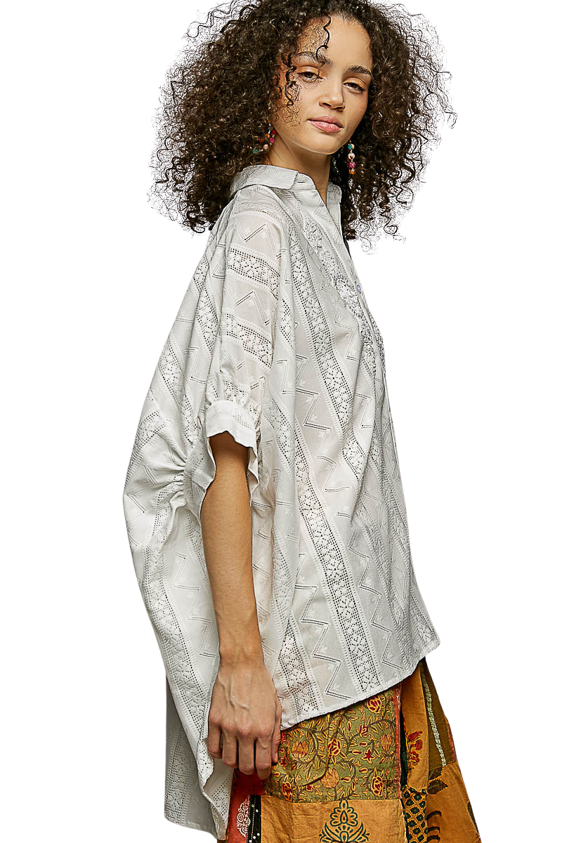 Lace Trim Drop Sleeve Ivory Shirt(0) $62.00 Excl. taxArticle code: POLT5IvoryMake a choiceSize : SSize : MSize : LSize: *SMLAdd to cartLogin for wishlistBuy NowDescriptionShareDesigned in half sleeve relaxed fit shirt top in cotton with lace trim point, normal washing, solid color. Facebook Pin it Whatsapp