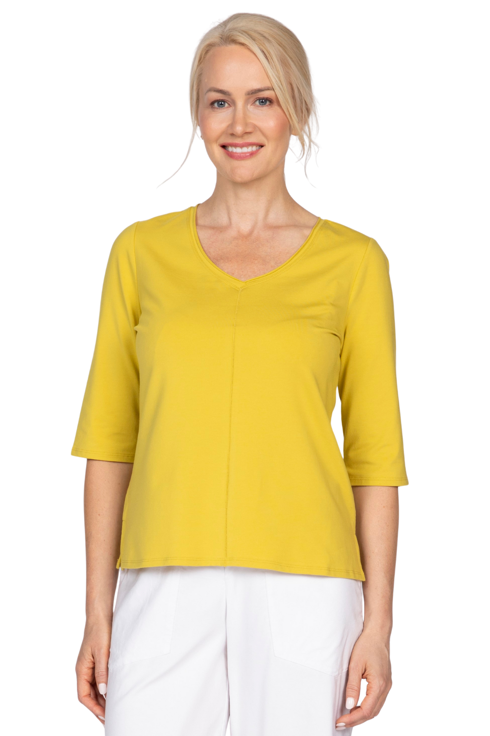 • Olivia Elbow V-Neck Tee in Pear