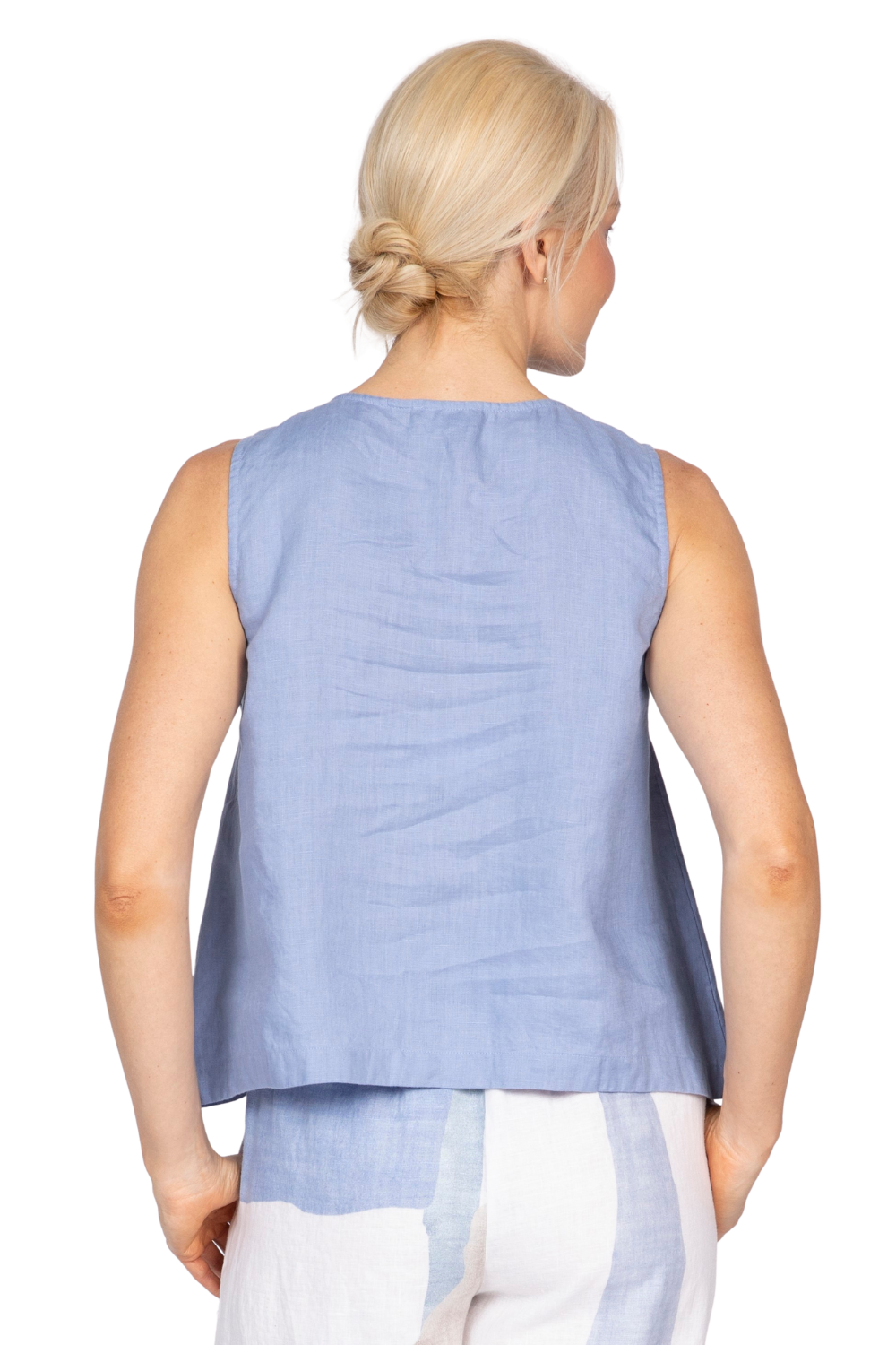 DetailsSleevelessCenter Pleat DetailScoop NeckSide Darts100% LinenMachine Wash Cold GentleReshape and Lay Flat to Dry