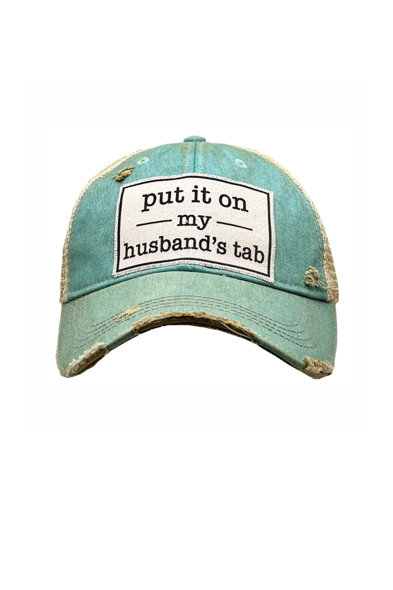 Vintage distressed trucker cap "Put It On My Husband's Tab"