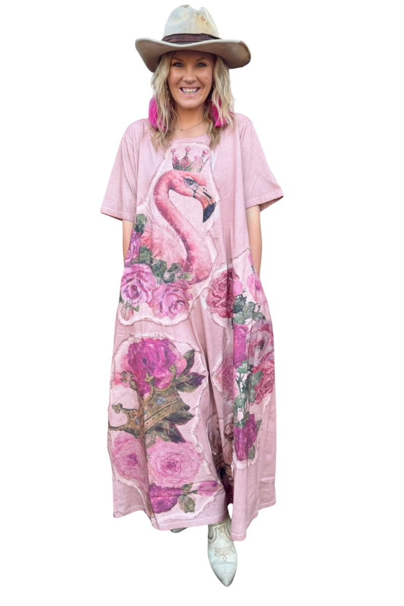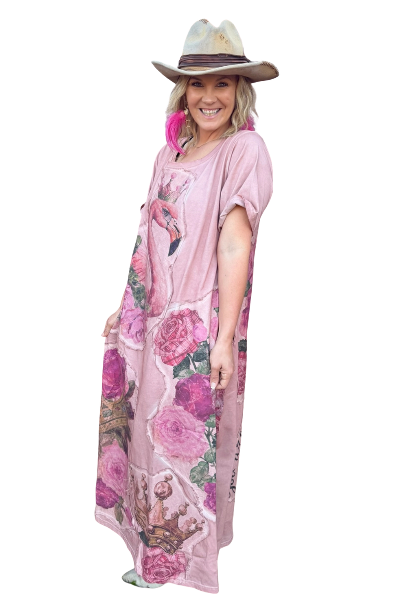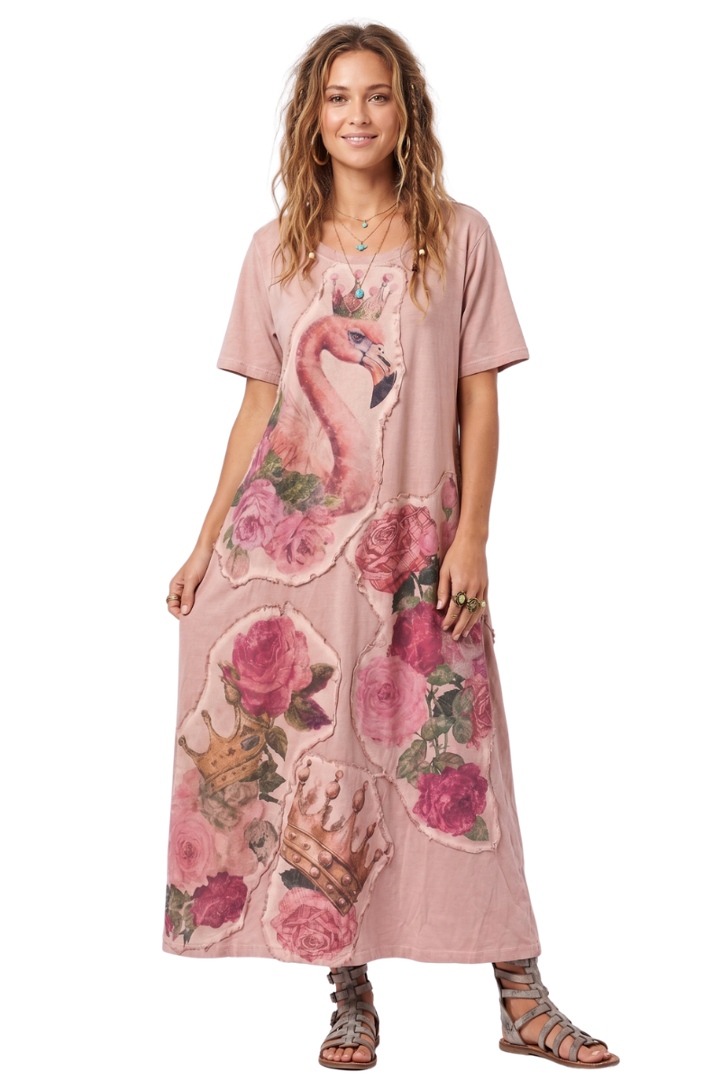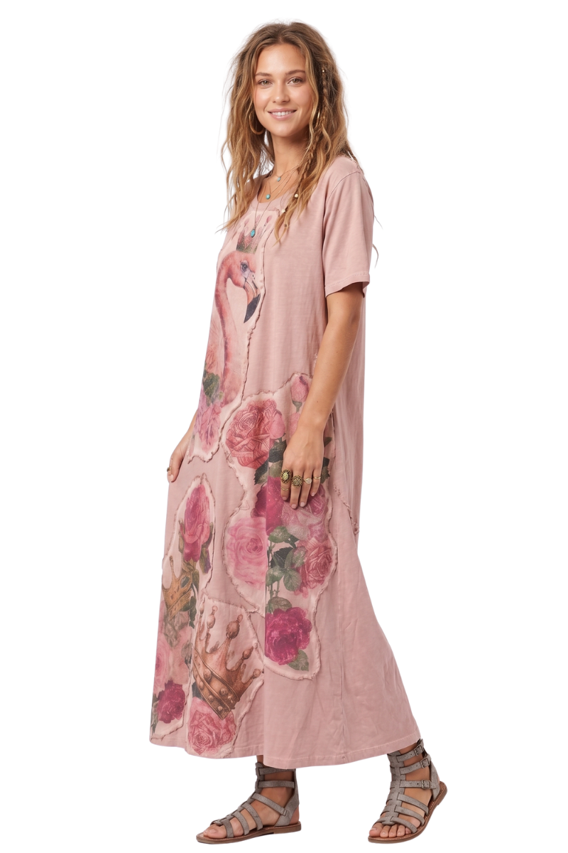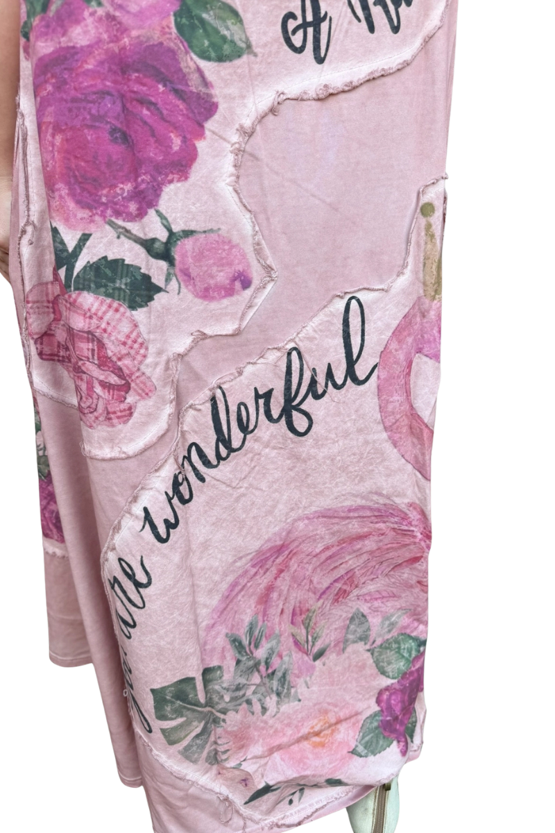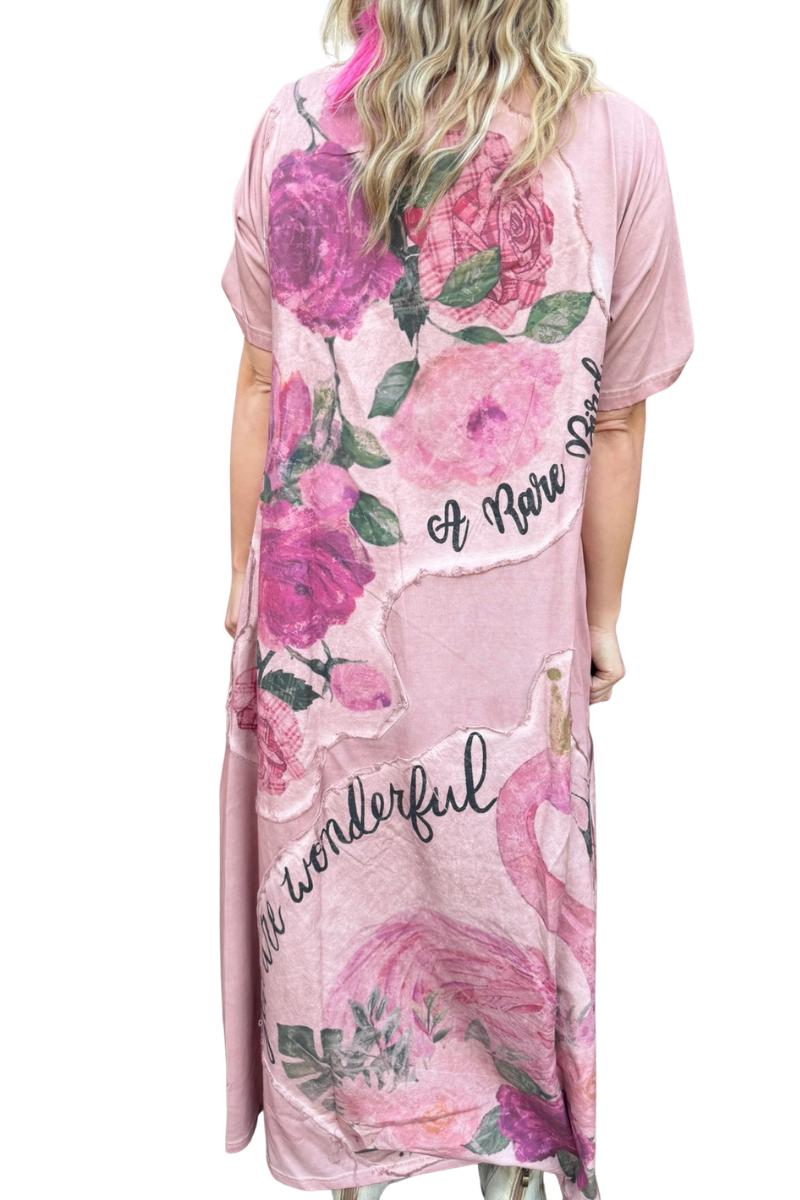 Stunning pink t-shirt dress crafted from a soft fabric of 100% cotton that feels as good as it looks. Designed with short sleeves and an easy, relaxed silhouette, this one size favorite truly works for everyone. Slip it on and go with a reminder that YOU are wonderful!