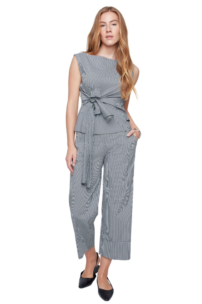 • Renuar Crisp Cotton Sleeveless Tie Top in Indigo Gingham