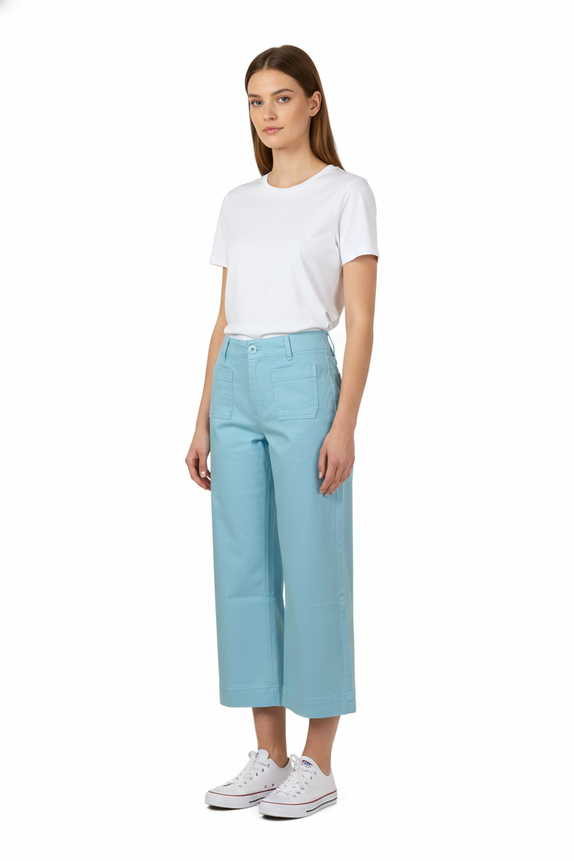 • Renuar Crop Wide Leg Pant In Capri Blue
