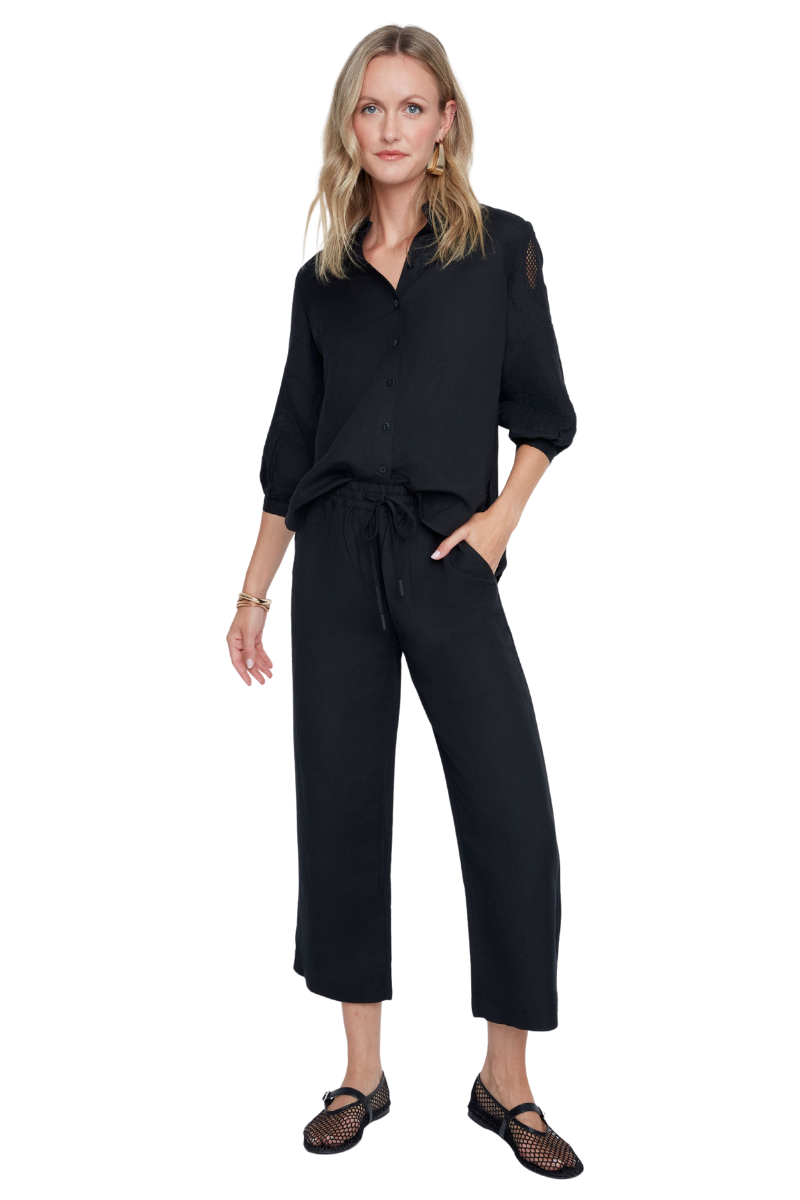 • Renuar Linen Crop Pant in Black