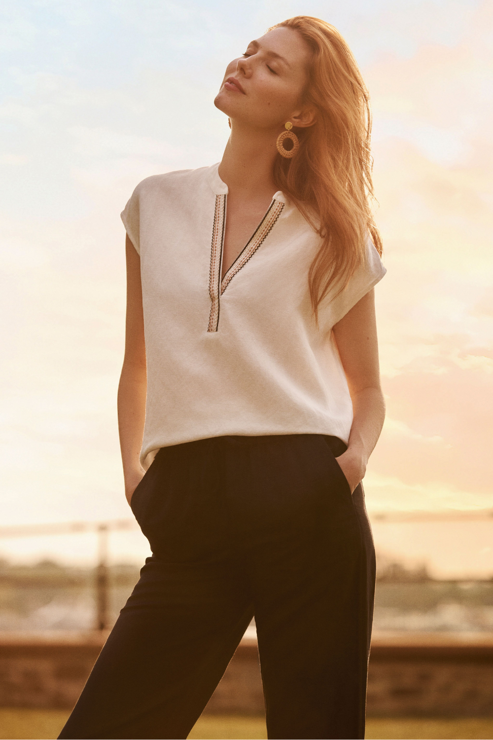 Classic linen in a comfortable crop pant, featuring an elastic drawstring waist. Pair with the matching top in any of the colors. This pant also comes in white, indigo, and mocha!