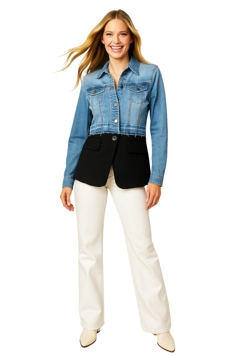 Four Front Pockets (two on top jean jacket with buttons, and two on bottom blazer)