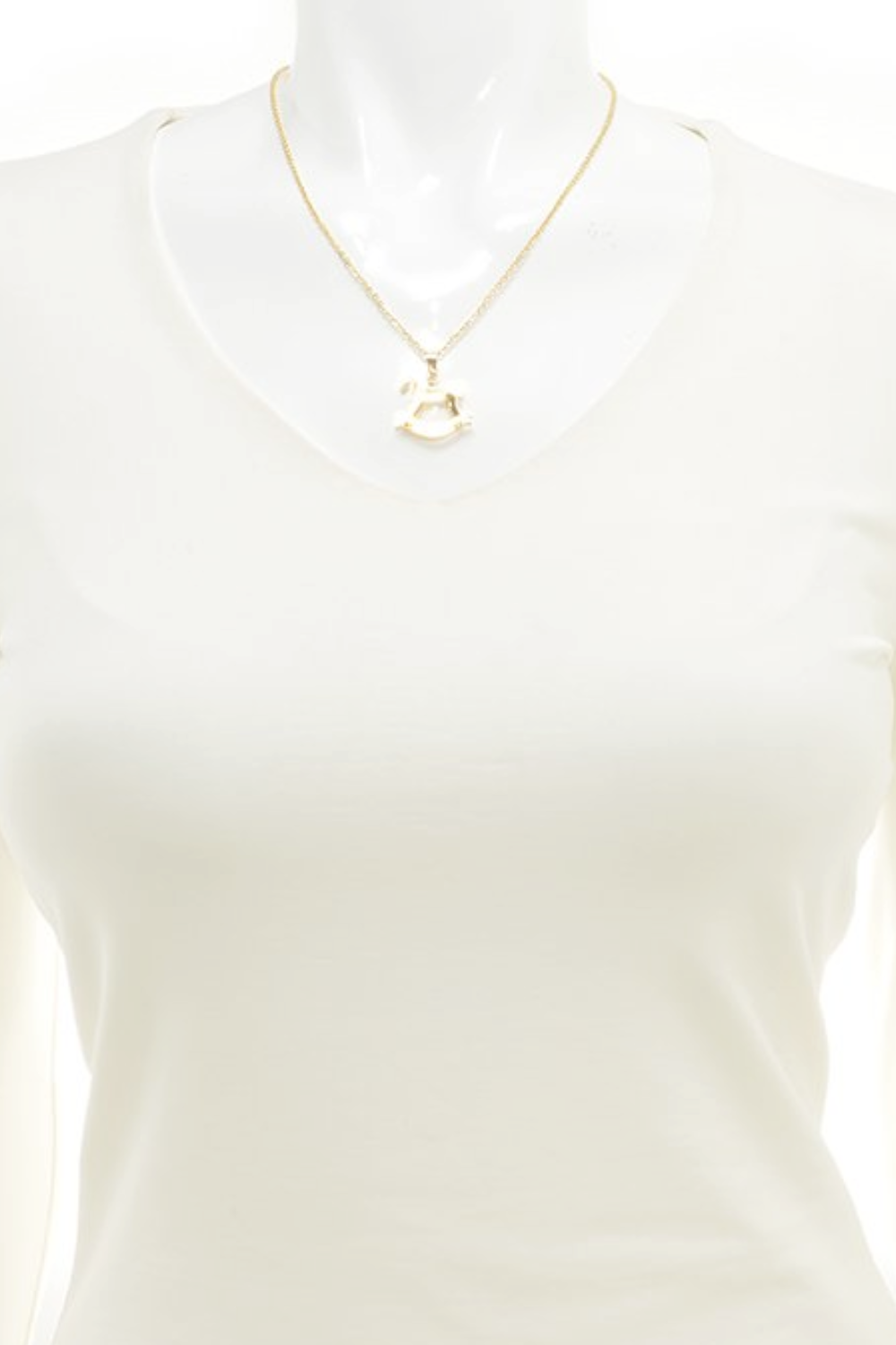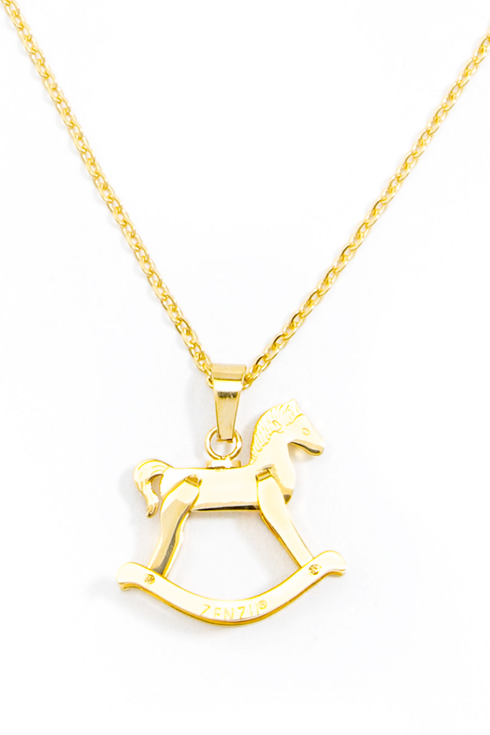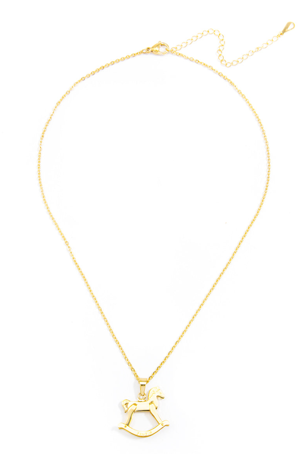 Rocking Horse Charm Necklace(0) $31.00 Excl. taxArticle code: AZZN1202GoldMake a choiceOne SizeMake a choice: *One Size - $31.00Add to cartLogin for wishlistBuy NowDescriptionShareThis charming rocking horse necklace will add a cute and classic touch to any outfit. Facebook Pin it Whatsapp