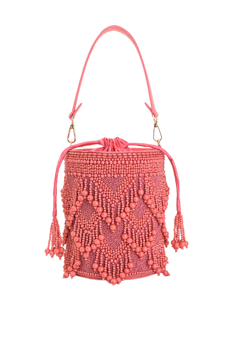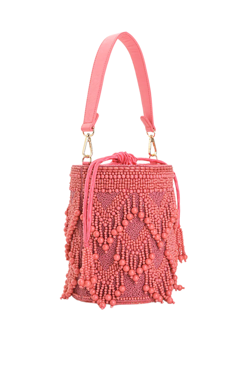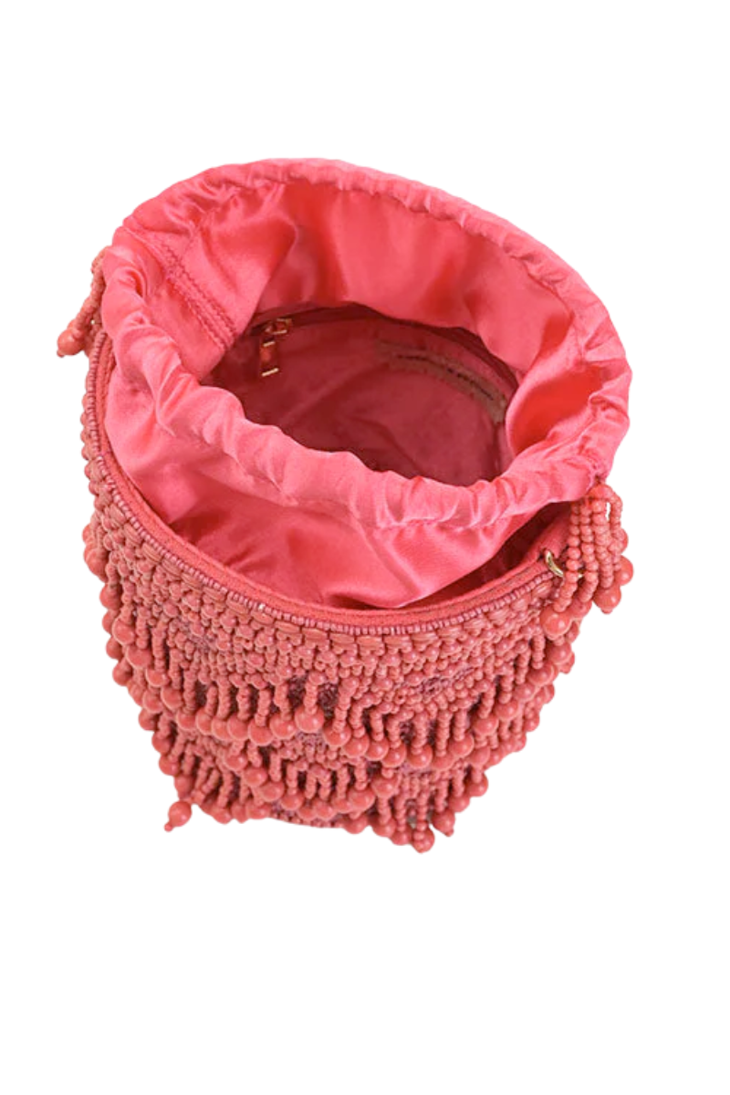 The pink wrist carry detachable handle (attached with a chic golden finish dog hook) adds the perfect touch of luxury, while the pink satin potli lining and drawstring closure keep everything tucked away in style. Bonus points for the attractive beaded tassel detail—because who doesn’t love a little extra fun? Inside, it’s all about organization with lined interiors and a zip pocket to keep your essentials safe and sound. Perfect for adding a little shine to your day!