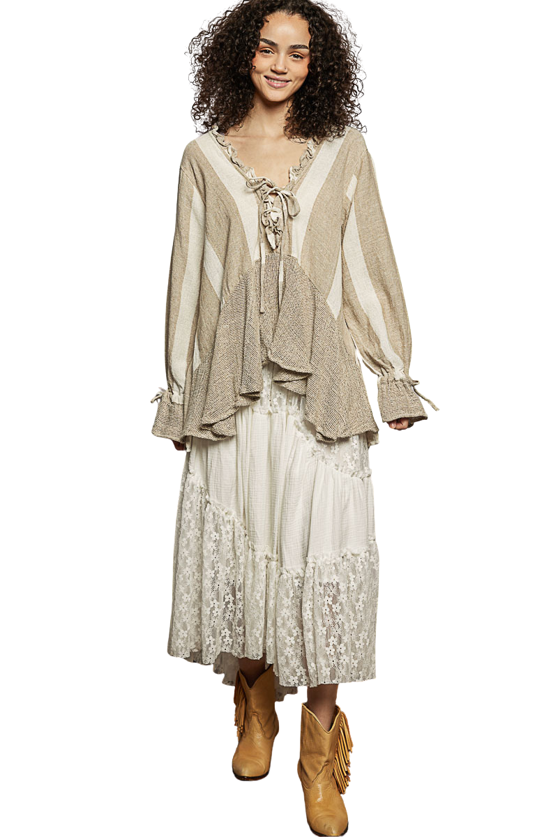 Lace-up Tie Detail on Front and Sleeves