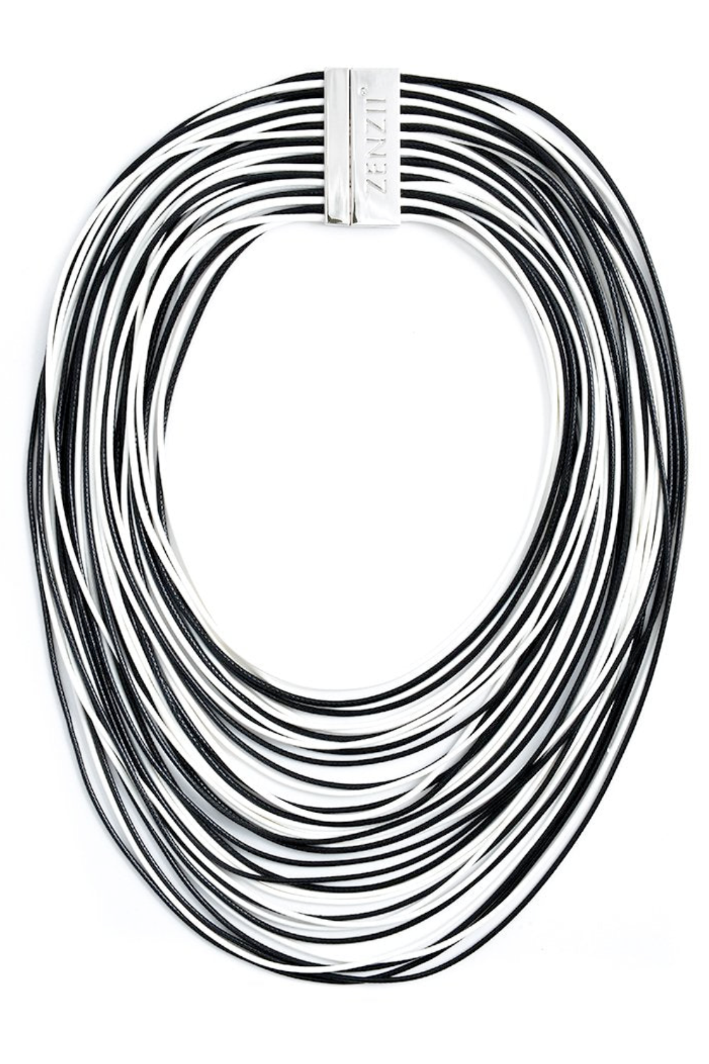 Tight Rope Necklace in Black/White(0) $43.00 Excl. taxArticle code: AZZN1129BlkWhtMake a choiceOne SizeMake a choice: *One Size - $43.00Add to cartLogin for wishlistBuy NowDescriptionShareMulti-strand layered collar necklace made of lightweight, faux leather cords. Facebook Pin it Whatsapp