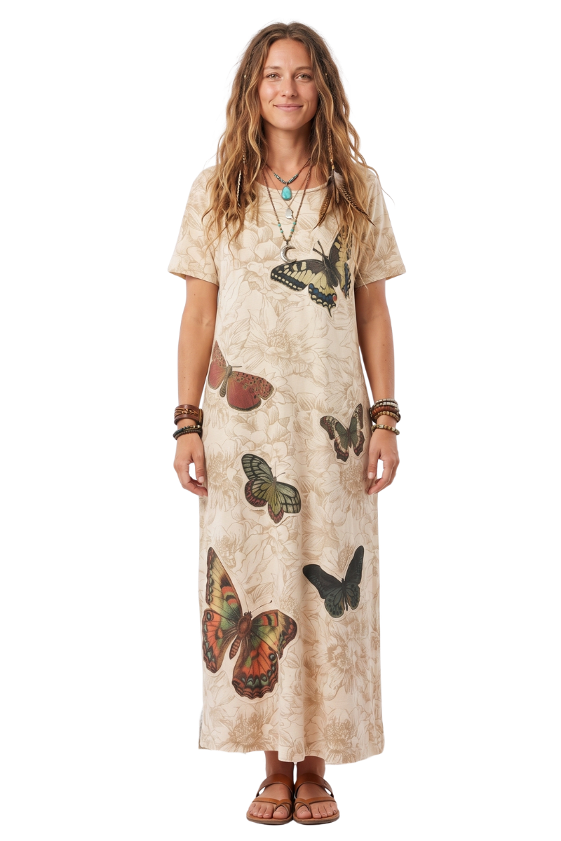 Weekend Wander Dress Flutter By(0) $156.00 Excl. taxArticle code: JGDWanderFlutterMake a choiceSize : ONE SIZESize: *ONE SIZEAdd to cartLogin for wishlistBuy NowDescriptionShareSo so comfortable! The Jaded Gypsy Tee Dresses are soft and lush. With an easy fit they drape beautifully with a flattering bust line fit. Appliqued butterflies of all colors adorn this perfect all around dress. Facebook Pin it Whatsapp